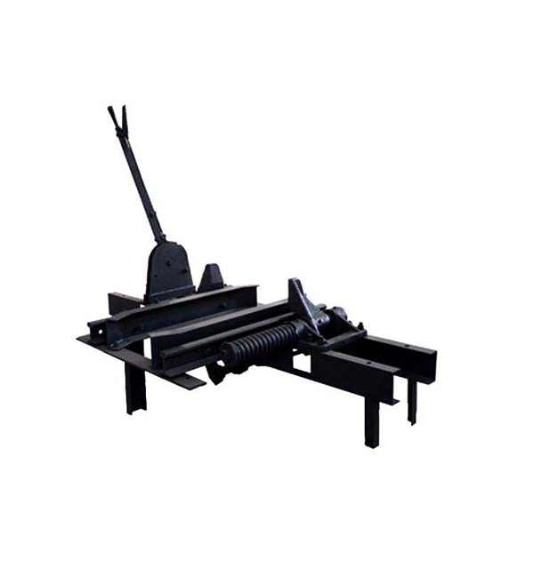 此阻車器為阻輪式阻車器,是礦井車場(chǎng)中將運(yùn)行的礦車停止在某一個(gè)固定點(diǎn)的限位裝置,主要由一對(duì)阻爪和彈簧緩沖裝置等組成。阻爪打開時(shí),礦車可自由通過;阻爪關(guān)閉時(shí)即阻擋住礦車車輪,是礦車停停止前進(jìn)。阻車器可分為單式和復(fù)式兩種。復(fù)式阻車器即兩個(gè)聯(lián)動(dòng)的單式阻車器,相互動(dòng)作閉鎖,除停止礦車外,還起分解礦車的作用。